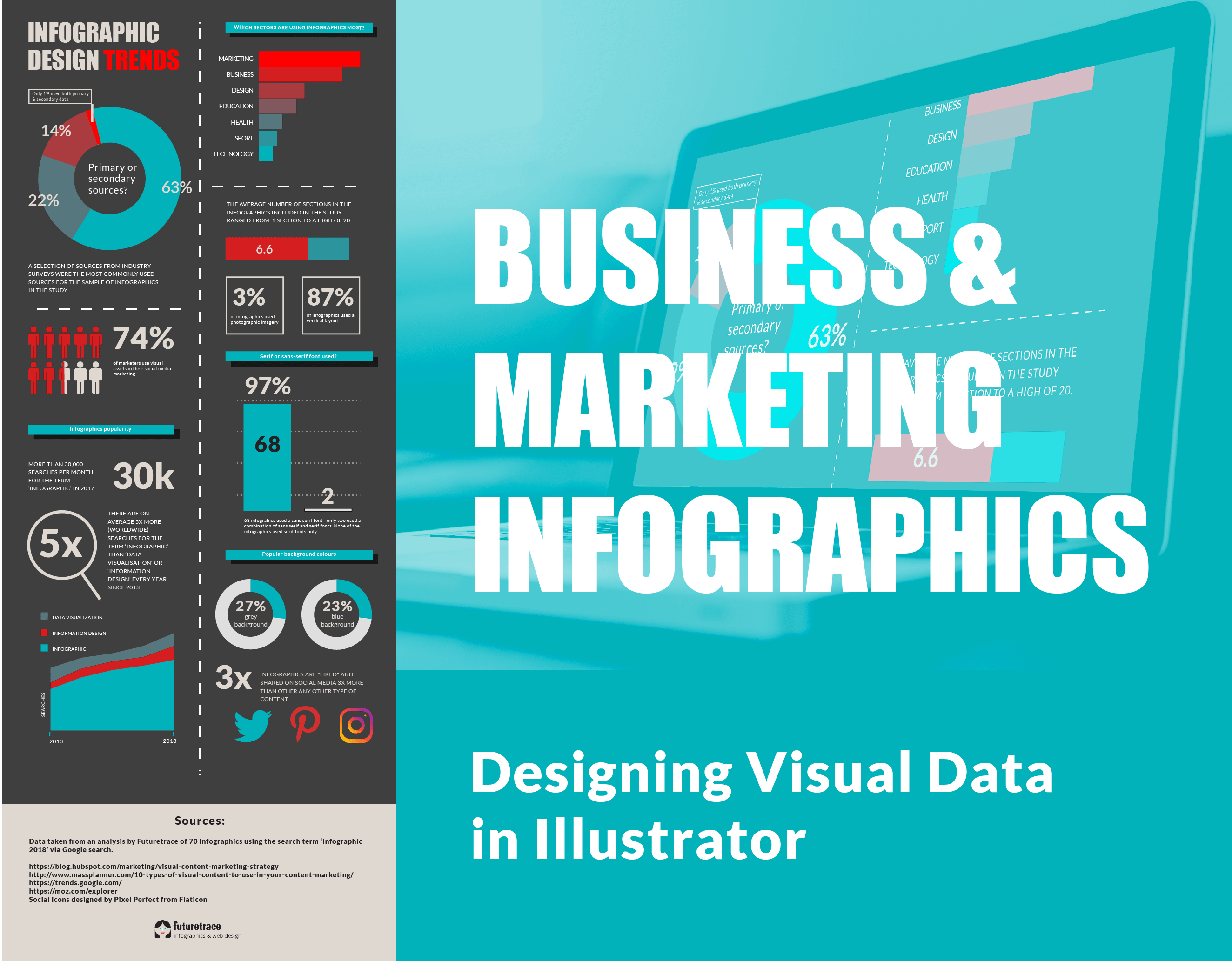 Learn how to create an infographic creating graphs, pictograms and icons, integrating with text to tell a story. Find out how to design appealing visuals using a defined colour scheme with graphs, icons & text.